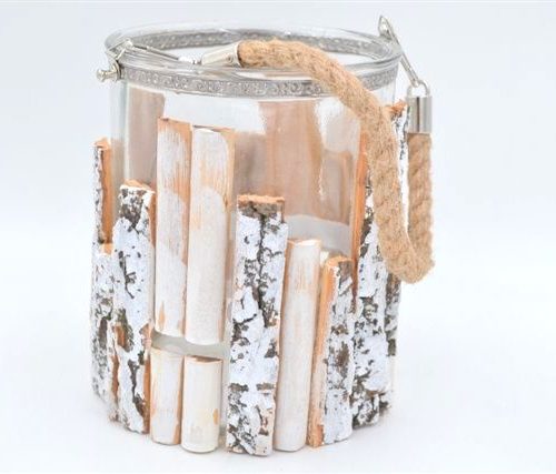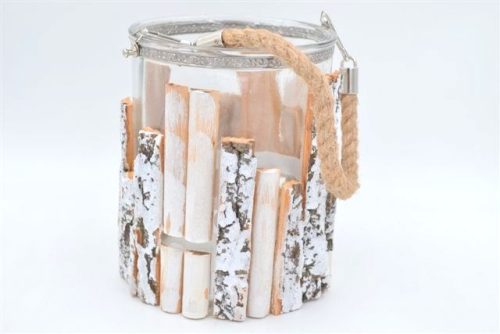 LANTERNA VETRO e LEGNO 100620 17x13cm S/Import
