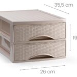 Cassettiera Organizer Effetto Rattan 2 Cassetti Bianca 26 x 35 x 19 cm
