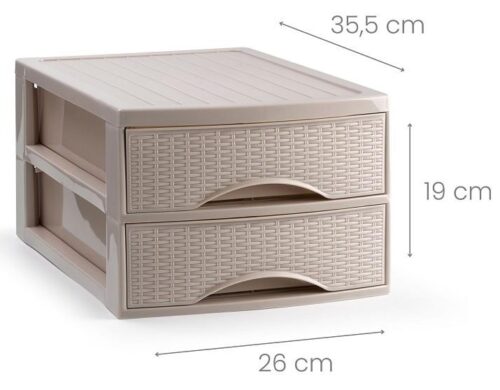 Cassettiera Organizer Effetto Rattan 2 Cassetti Tortora 26 x 35 x 19 cm