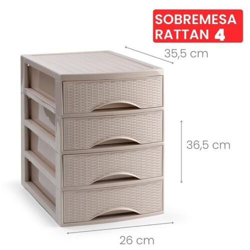 Cassettiera Organizer Effetto Rattan 4 Cassetti Tortora 26 x 35 x 36 cm