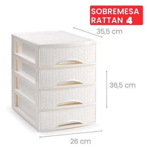 Cassettiera Organizer Effetto Rattan 4 Cassetti Bianca 26 x 35 x 36 cm