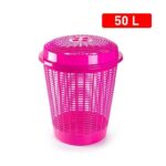 Cesta Portabiancheria Cestone Forato in Plastica Marrone 50 Litri