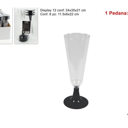Set 6 Calici Flut Monouso in Plastica Gambo Nero