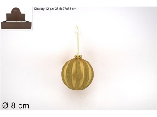 PALLINA ALBERO VETRO 8cm COLORE MORO GLITTER