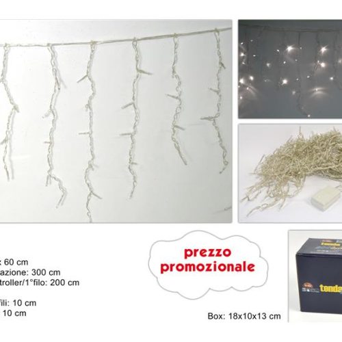 Decorazione Natale Tenda con Gioco Luci Bianco Fredda 200 Luci 4 Metri
