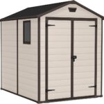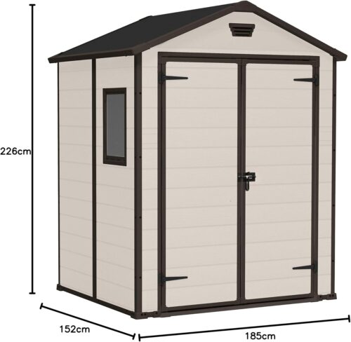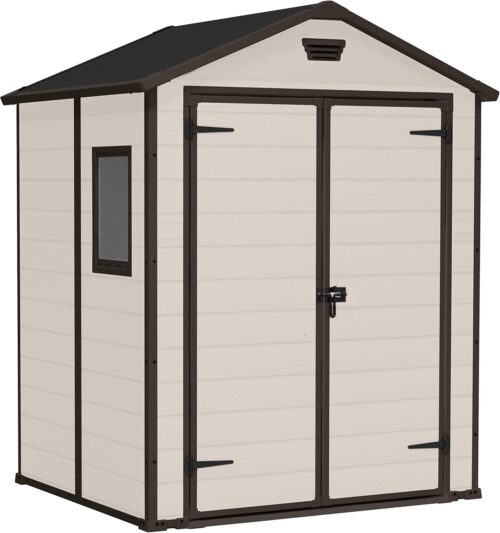 Keter Casetta da Giardino Manor 6×5, Finitura Effetto Legno Graffiato, Beige, 185x152x226H Cm
