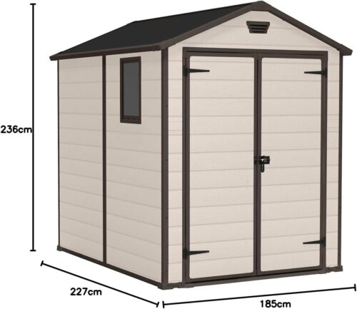 Keter Casetta da Giardino Manor 6×8, Finitura Effetto Legno Graffiato, Beige, 185,8×236,8x227H Cm
