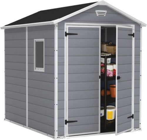 KETER TRASFORMA IL TUO GIARDINO: con la casetta Manor 6×8 dalle dimensioni medio-grandi, realizzata con pannelli con finitura effetto legno graffiato