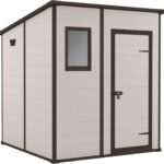 KETER TRASFORMA IL TUO GIARDINO: con la casetta addossata Manor Pent 6×4 dalle dimensioni compatte, realizzata con pannelli con finitura effetto legno graffiato