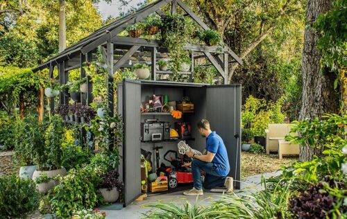 Il Cortina Alto è il porta attrezzi da esterno che unisce robustezza e praticità. Realizzato in EVOTECH+, offre una resistenza superiore agli agenti atmosferici e una lunga durata nel tempo. Con 1400L di capacità, permette di riporre comodamente oggetti di piccole e medie dimensioni. Le cerniere in metallo con apertura a 110° facilitano l’accesso; include due mensole regolabili con supporti ed il pavimento dotato di rampa rende l’organizzazione ancora più semplice. La chiusura lucchettabile garantisce la sicurezza, mentre la sua resistenza ai raggi UV lo rende ottimo per ogni stagione climatica avversa dell’anno. Facile da assemblare, è la scelta ottimo per ottimizzare e proteggere il tuo spazio esterno.