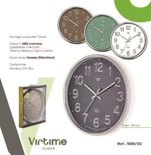 OROLOGIO PARETE CROMATO FONDO COLOR 30cm 1859/00 VIRTIME