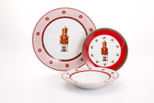 Servizio di Piatti da Tavola in Ceramica Natale Charme Schiaccianoci 18 Pezzi