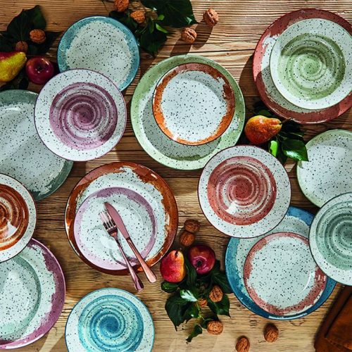Realizzato in raffinata porcellana multicolore, con toni autunnali e un esclusivo effetto pepato, offre una perfetta fusione di eleganza e funzionalità.