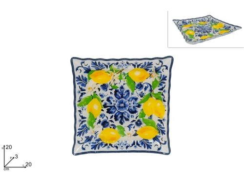 PIATTO VETRO DECORO MAIOLICA LIMONI 20x20cm 675526 DS
