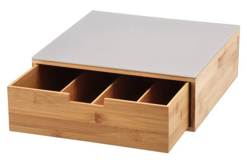 Cassetto Portacialde Portacapsule in Bamboo Ripiano in Vetro Tortora 32 x 30 x 11 cm
