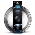 - L PRODOTTO: Coperchio rotondo in vetro temperato con bordo in acciaio e valvola di sfogo.