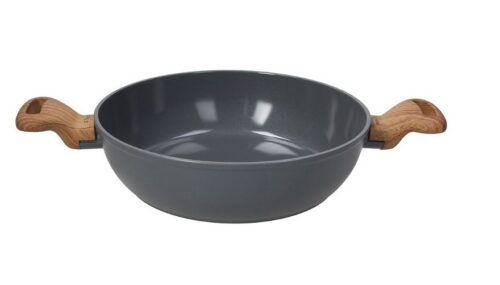 corpo in alluminio riciclato e forgiato – fondo ad alto spessore adatto anche all’induzione – rivestimento esterno resistente alle alte temperature –