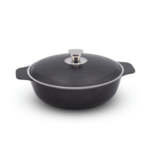 Realizzata in puro alluminio con rivestimento antiaderente ,le forme rotondeggianti e bombate ,il fondo ad induzione e i materiali utilizzabili permettono una cottura perfetta e uniforme in grado di legare ed esaltare i sapori di tutti gli ingredienti per realizzare dei veri capolavori in cucina.