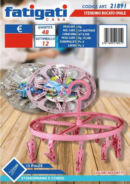 STENDINO BUCATO ACCIAIO OVALE 12pinze 21891 FATIG