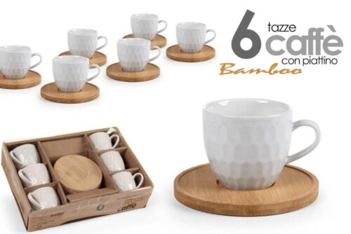 Set 6 Tazzine Tazze da Caffè con Piattino in Bamboo