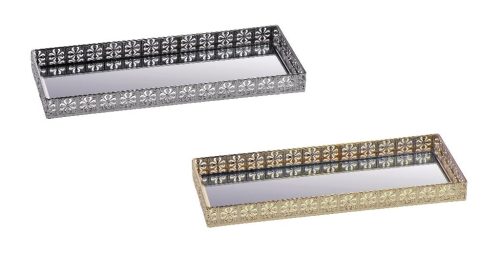 Vassoio Decorativo Casa in Metallo e Vetro Rettangolare Oro o Argento 30 x 12 cm 2 Colori