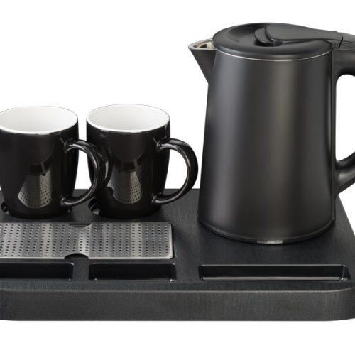 Set 4 Pezzi Bollitore Elettrico Colazione con Vassoio e 2 Tazze