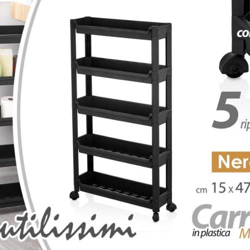 Carrello Portaverdure in Plastica Slim 5 Piani Nero 47 x 15 x 85 cm