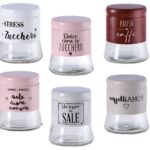 1 Pezzo Barattolo da Cucina in Latta e Bamboo 9,5 x 13 cm 3 Decori e 2 Colori